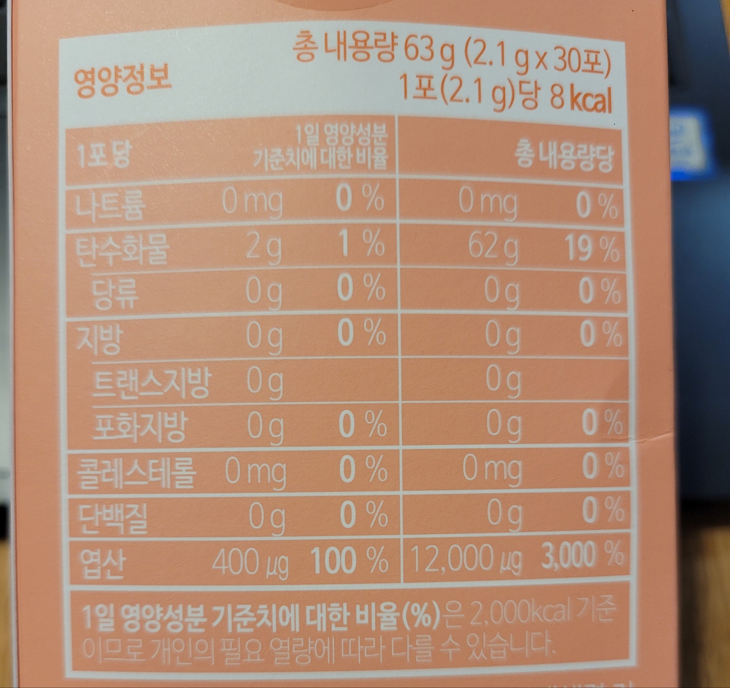 이노시톨 95.24%. 엽산 400mg 이 포함되어 있다.